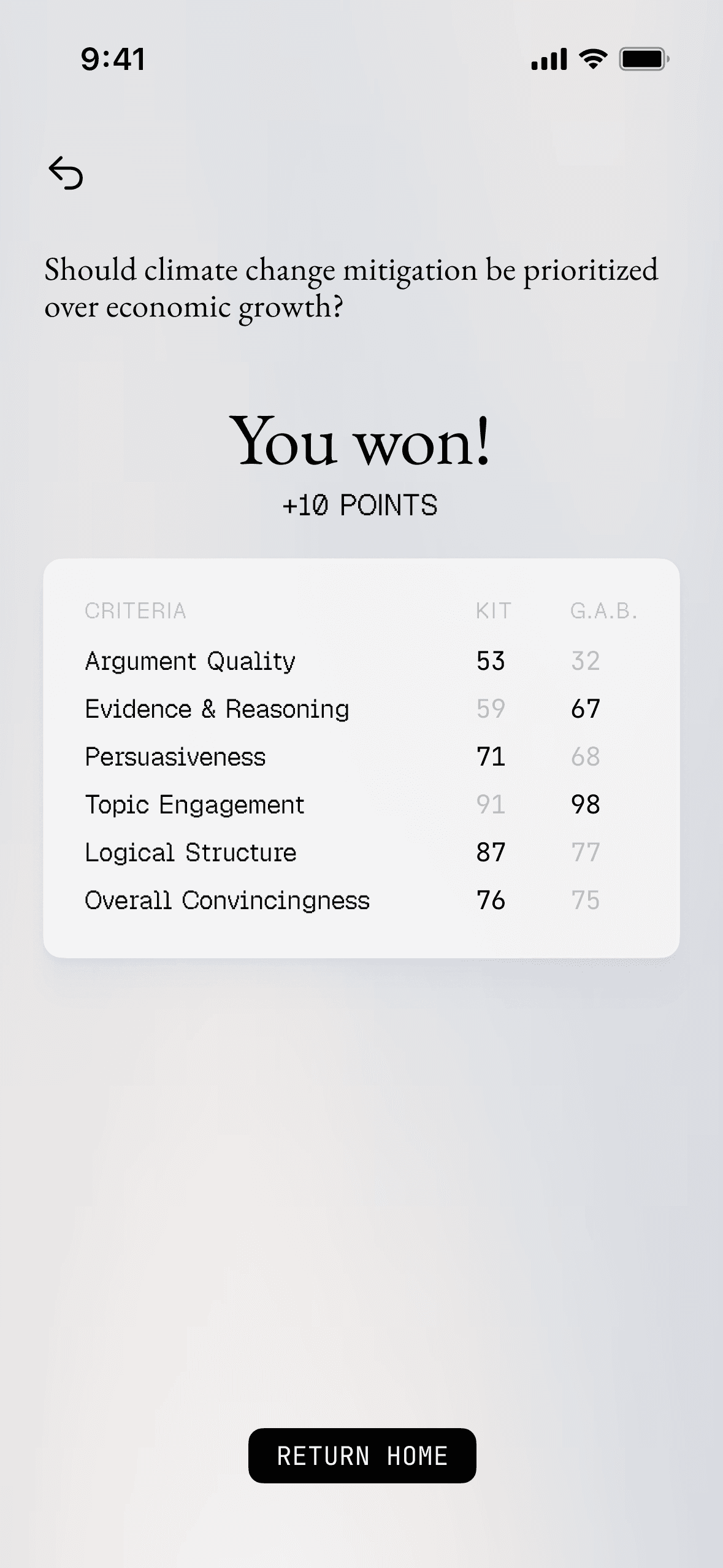 Gabble places users in fast-paced rounds of debate to discuss randomized topics with strangers — in search for truth using AI.