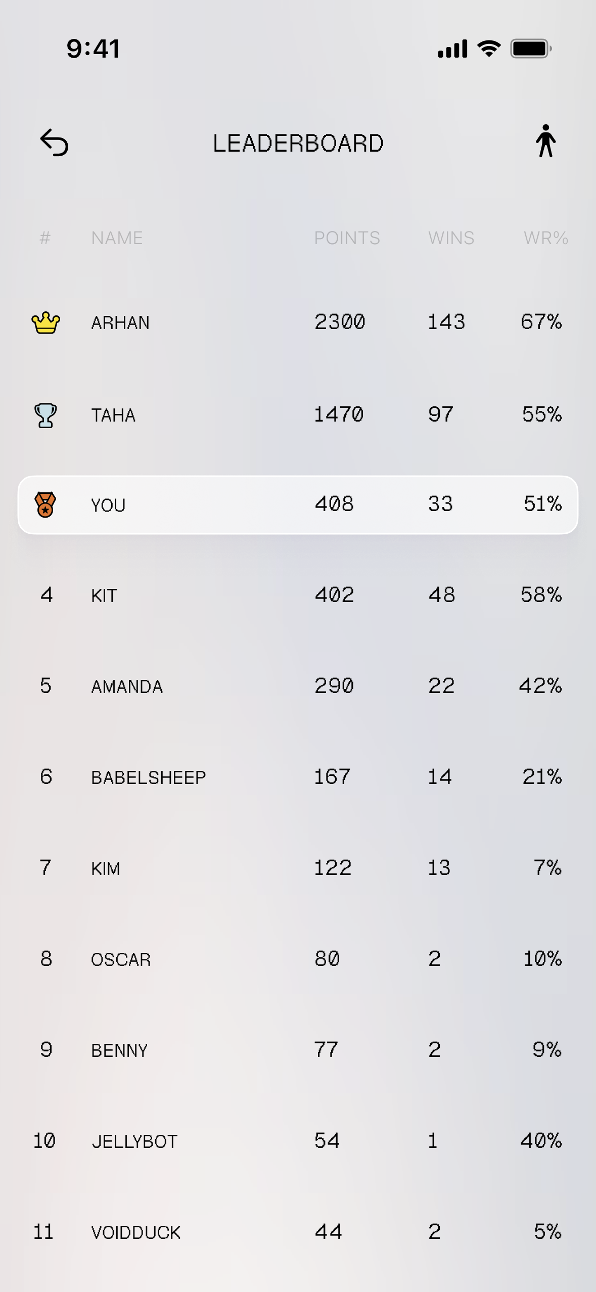 Get upvotes from spectators and progress through the Elo rating system, just like in a video game.